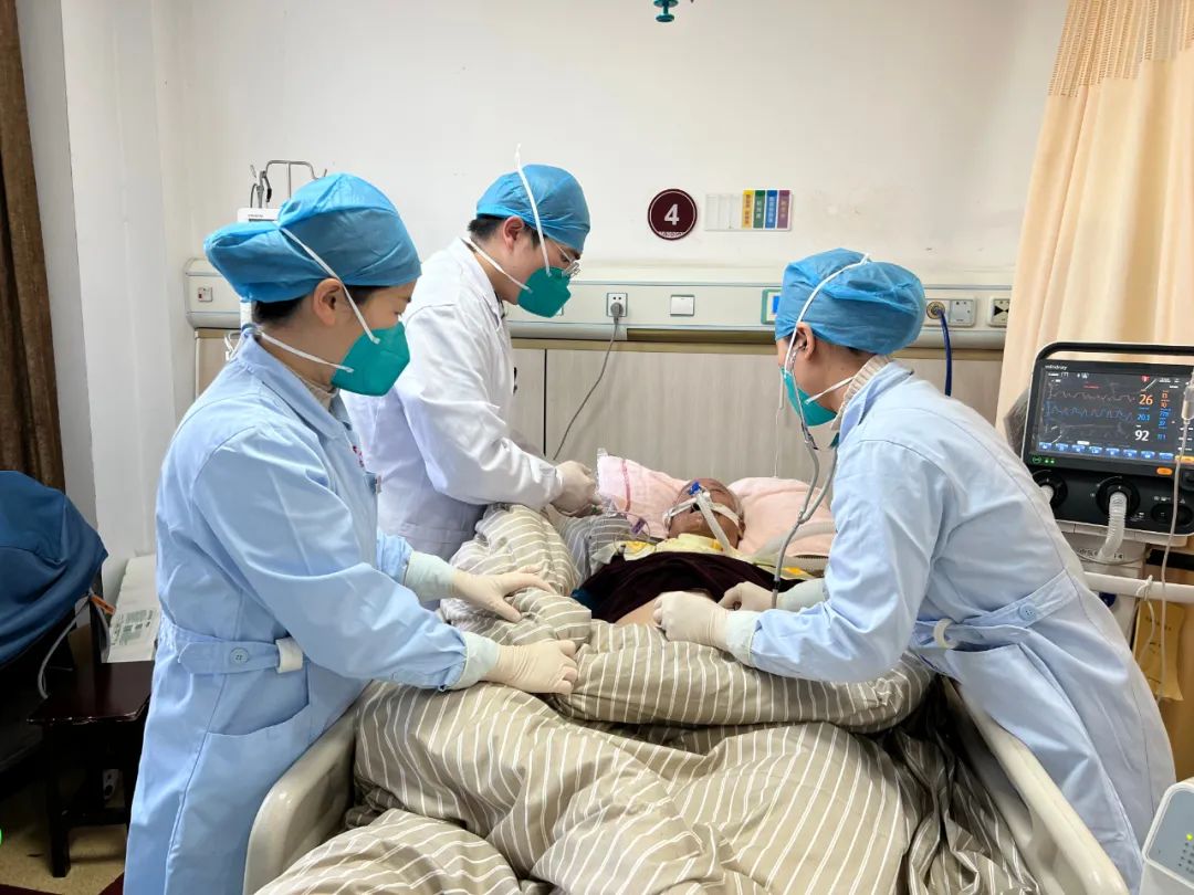 (2023年1月6日,江西中医药大学附属医院,医生为新冠病毒感染重症患者检查胃管。)
